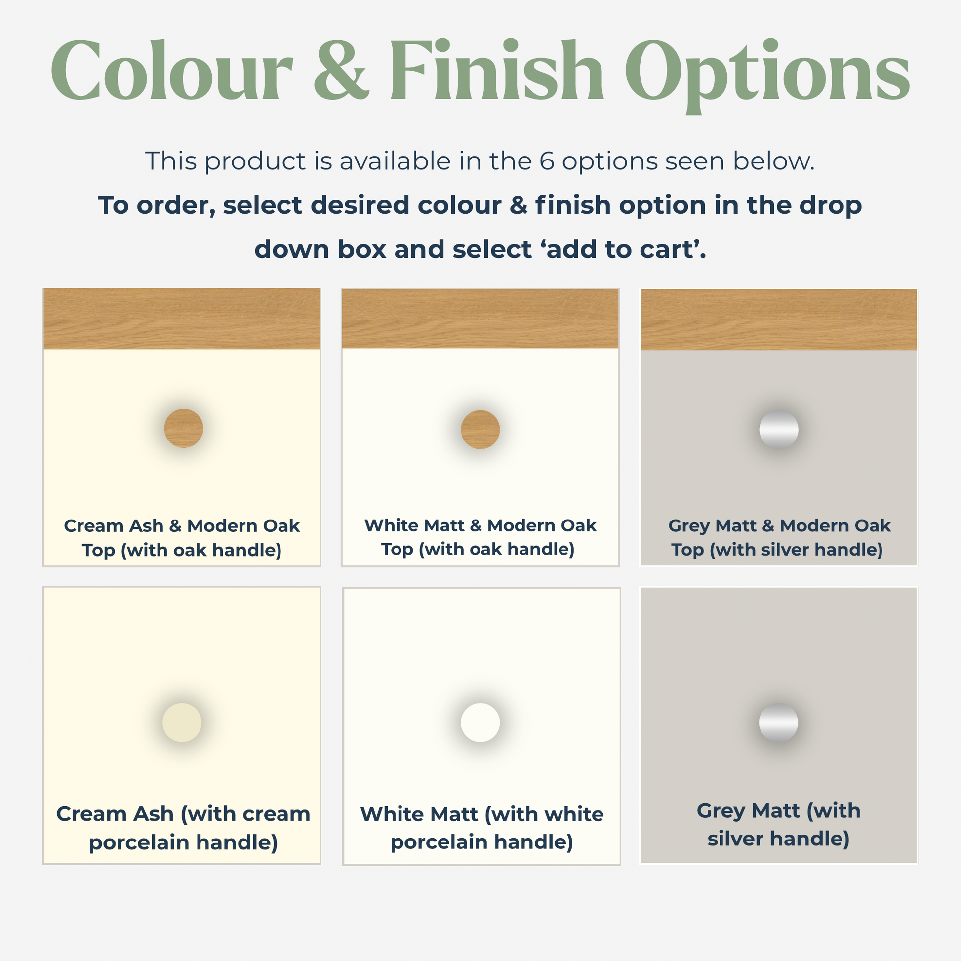 - handle type varies with colour finish (see images)